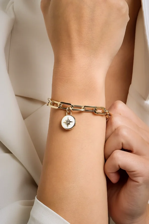 14 Ayar Sarı Altın Mineli Polaris Charm Bileklik