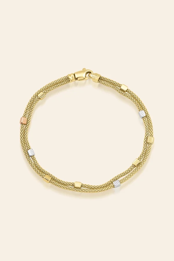 14 Ayar Sarı Altın Çok Sıralı Dokulu Bileklik