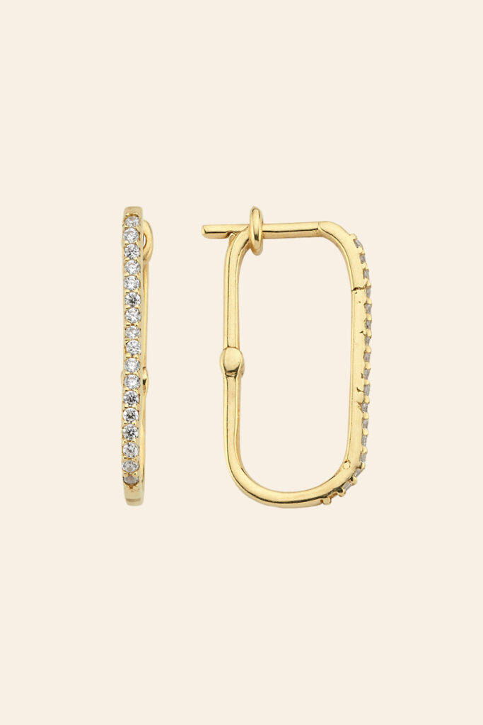 14 Ayar Sarı Altın Taşlı Dikdörtgen Halka Küpe