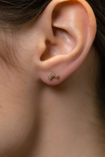 14 Ayar Sarı Altın Taşlı Üçgen Tasarım Minimal Küpe