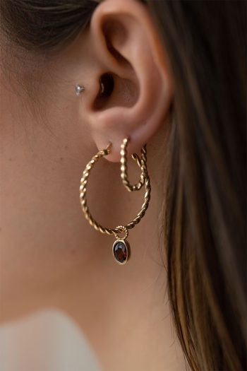 14 Ayar Sarı Altın Mineli Kırmızı Taşlı Koleksiyon Küpe
