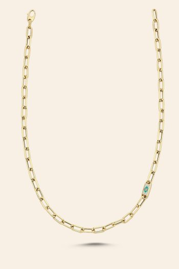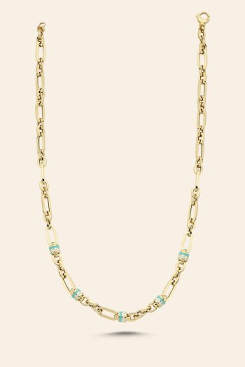 14 Ayar Sarı Altın Renkli Mineli Zincir Kolye