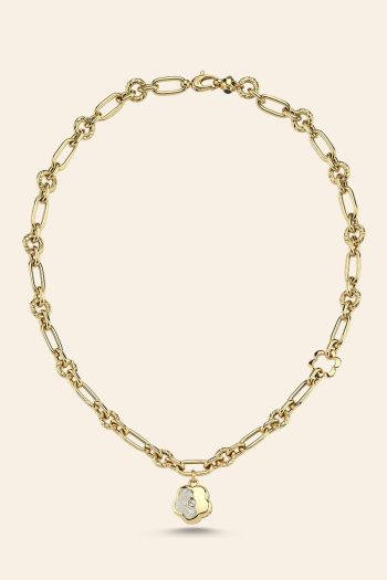 14 Ayar Sarı Altın Mineli Çiçek Tasarım Koleksiyon Kolye