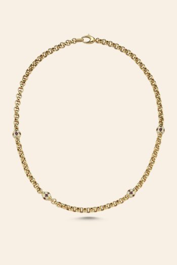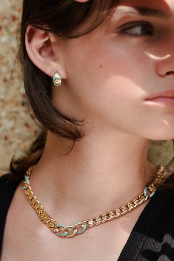 14 Ayar Sarı Altın Renkli Mine İşlemeli Zincir Kolye