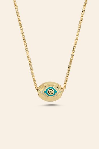 14 Ayar Sarı Altın Mineli İris Göz Figürlü Kolye