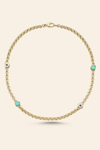 14 Ayar Sarı Altın Mineli Nazar Boncuğu Koleksiyon Kolye