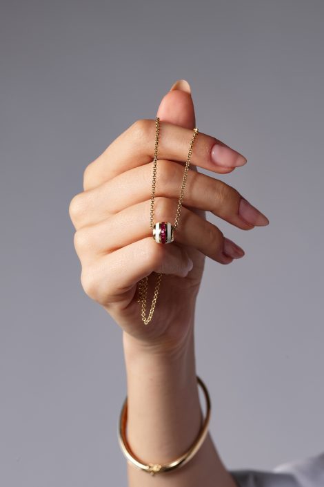 14 Ayar Sarı Altın Kırmızı Taşlı Mineli Koleksiyon Kolye