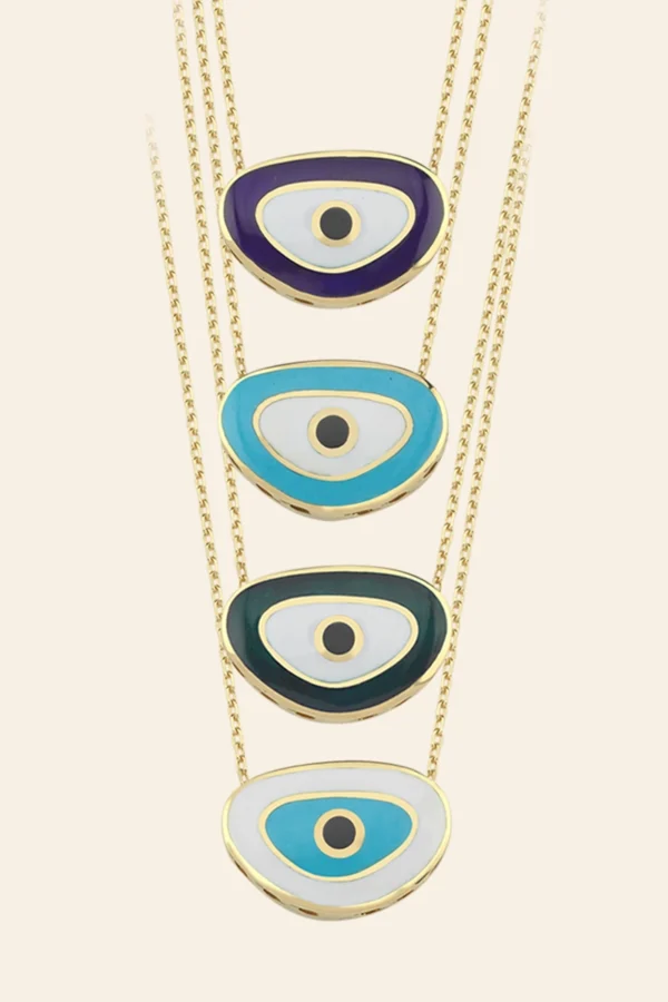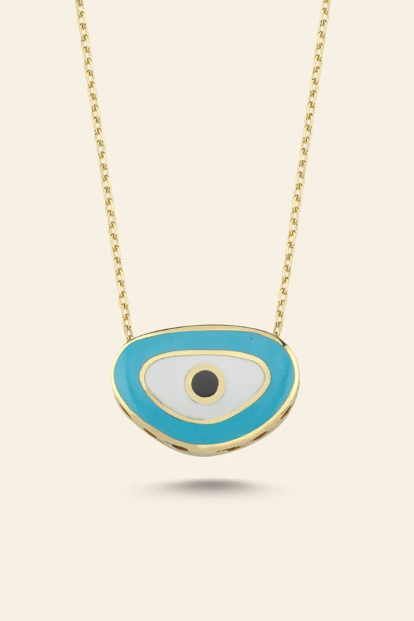 14 Ayar Sarı Altın Mineli Nazar Boncuğu Figürlü Koleksiyon Kolye