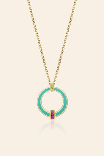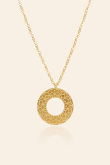 14 Ayar Sarı Altın Mineli Dairesel Tasarım Kolye