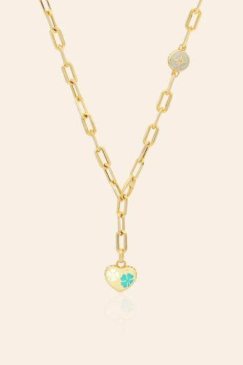 14 Ayar Sarı Altın Kuzey Yıldızı Yoncalı Kalp Koleksiyon Kolye