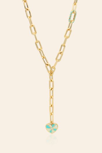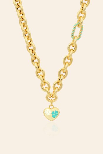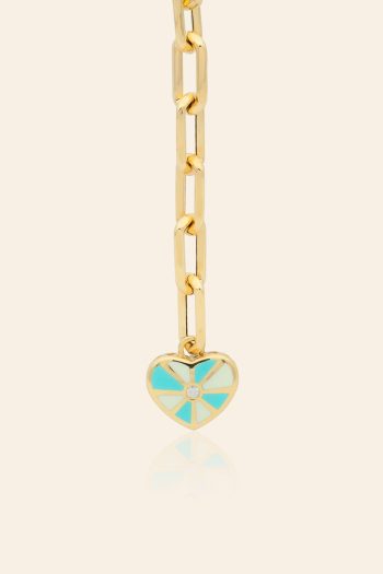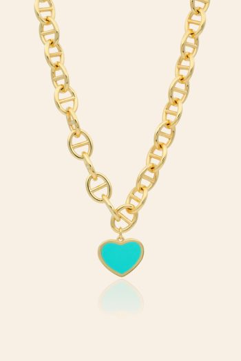 14 Ayar Sarı Altın Mineli Özel Zincir Kalp Kolye