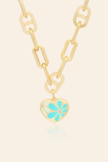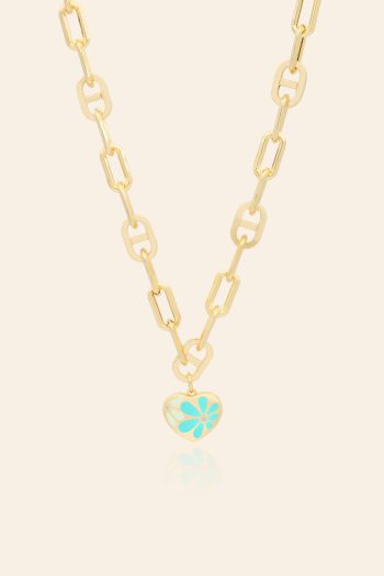 14 Ayar Sarı Altın Mineli Çiçek Figürlü Kalp Kolye