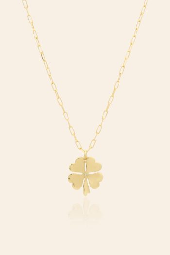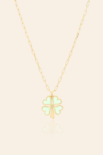 14 Ayar Sarı Altın Renkli Mineli Yonca Tasarım Kolye
