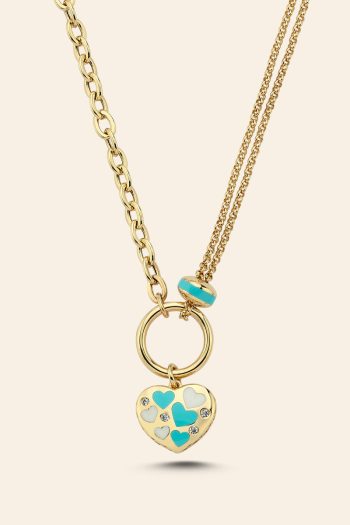 14 Ayar Sarı Altın Mineli Kalp Figürlü Koleksiyon Kolye