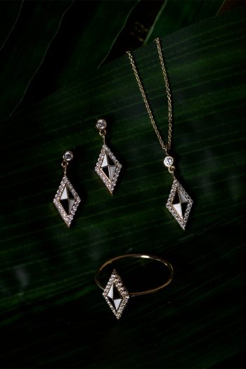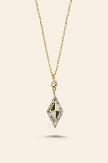 14 Ayar Sarı Altın Taşlı Mineli Geometrik Tasarım Kolye