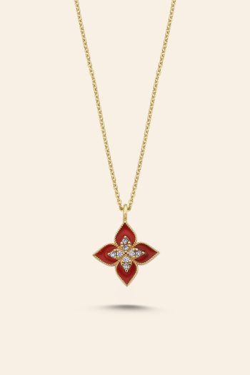 14 Ayar Sarı Altın Mineli Çiçek Tasarım Kolye