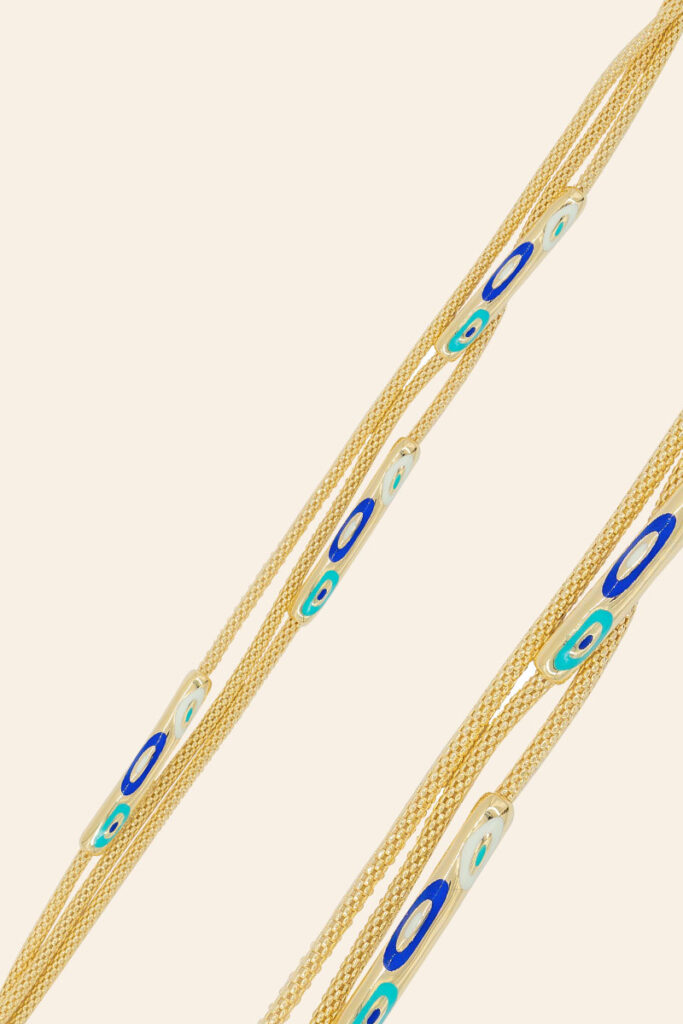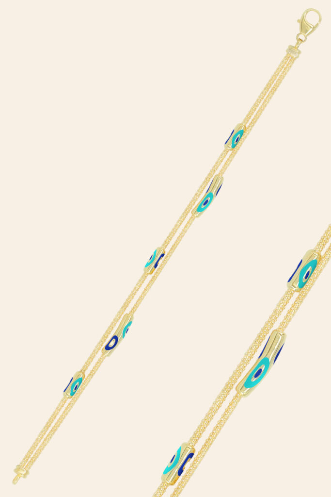 14 Ayar Sarı Altın 3 Sıralı Nazar Boncuk Figürlü Bileklik