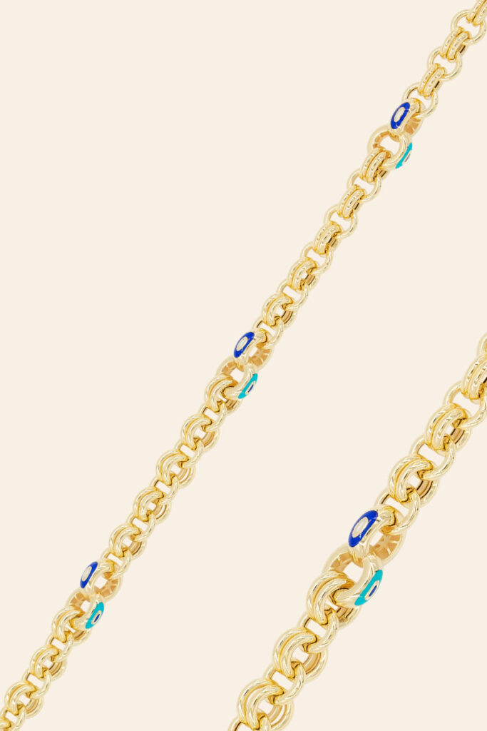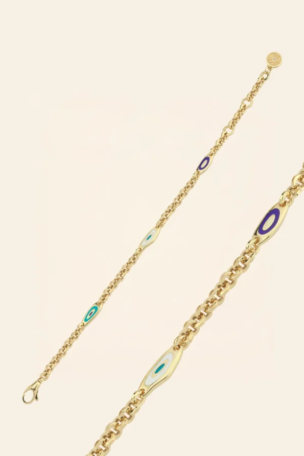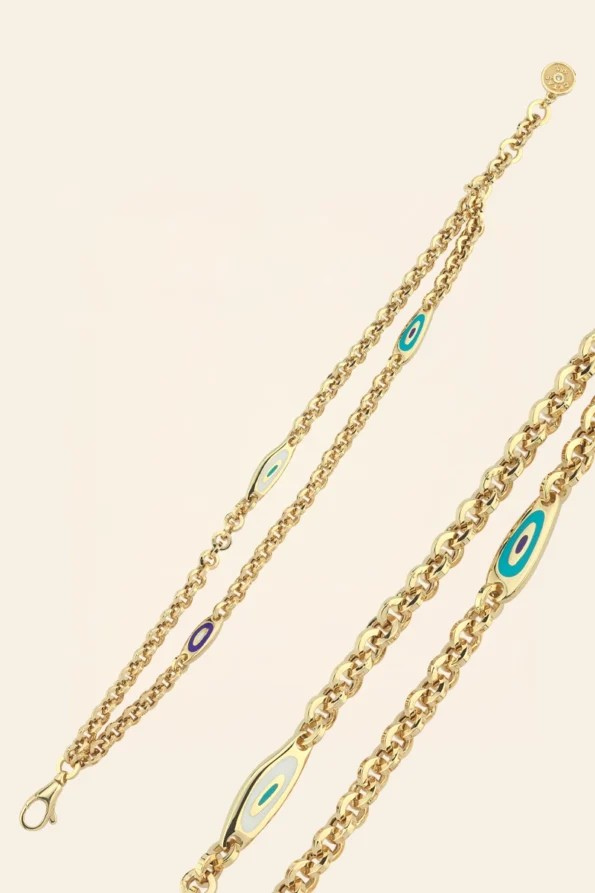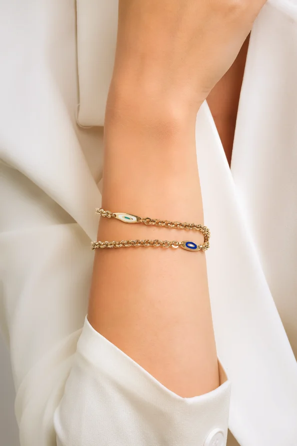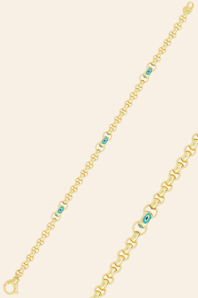 14 Ayar Sarı Altın Göz Detaylı Zincir Bileklik