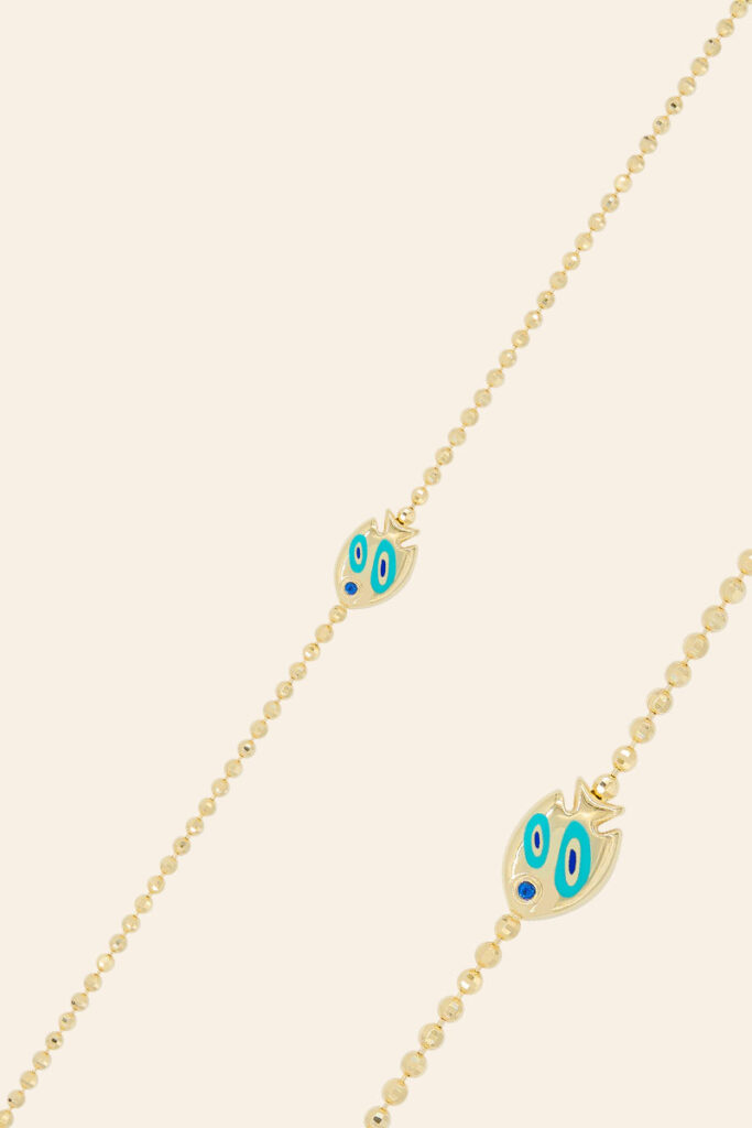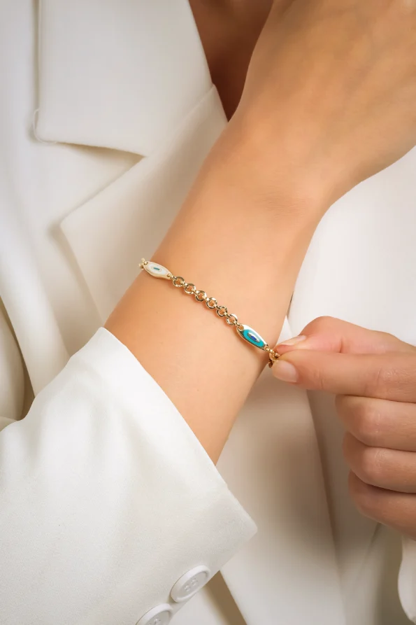 14 Ayar Sarı Altın Mineli Nazar Figürlü Bileklik