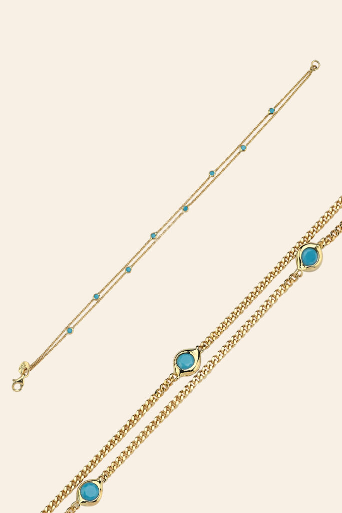 14 Ayar Sarı Altın Mineli Nazar Boncuğu Koleksiyon Bileklik