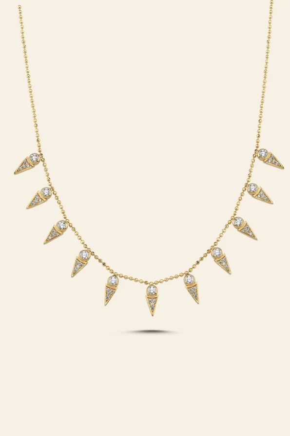 14 Ayar Sarı Altın Geometrik Taşlı Tasarım Kolye