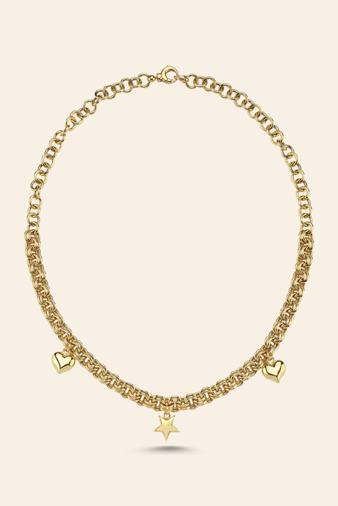 14 Ayar Sarı Altın Yıldız Kalp Tasarım Charm Kolye