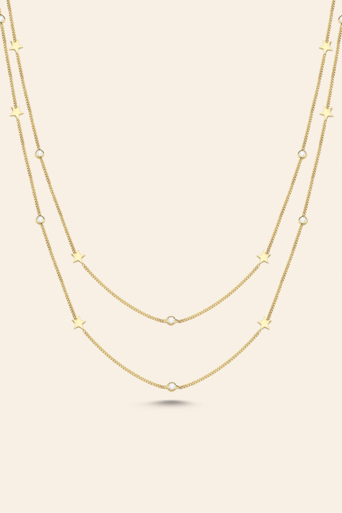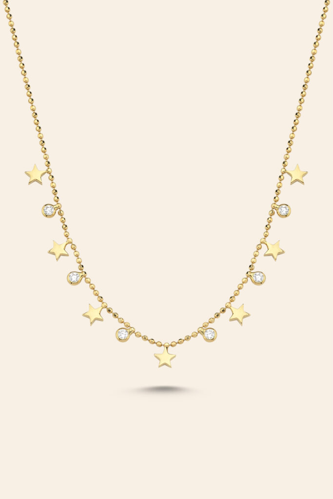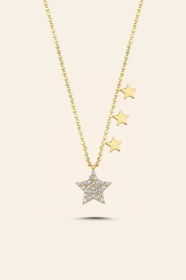 14 Ayar Sarı Altın Taşlı Yıldız Figürlü Zarif Kolye