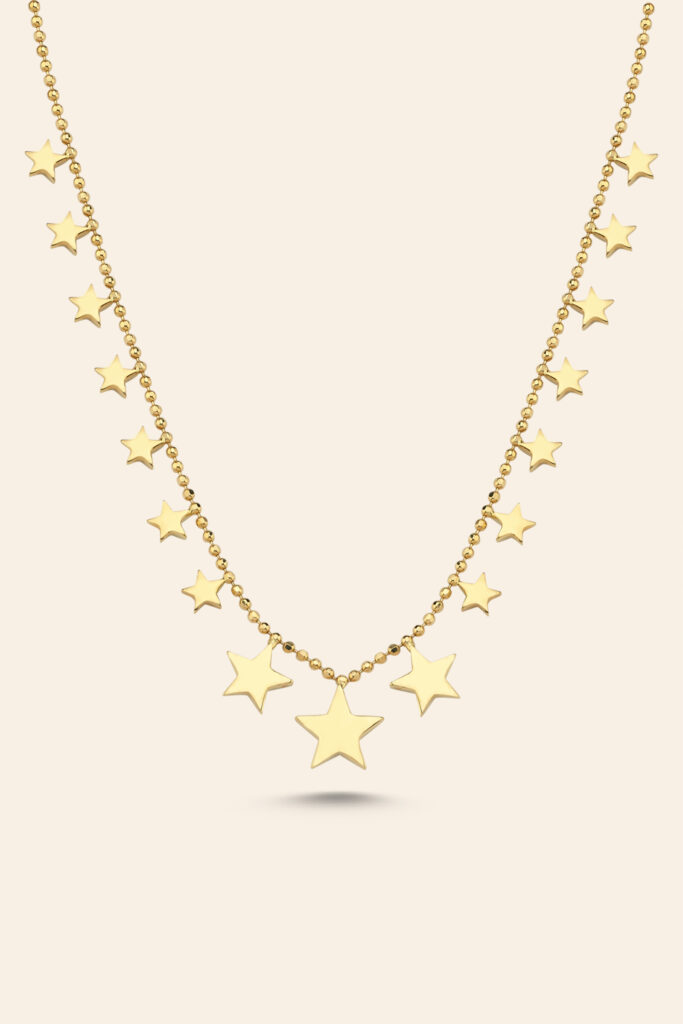 14 Ayar Sarı Altın Yıldız Parlak Kolye
