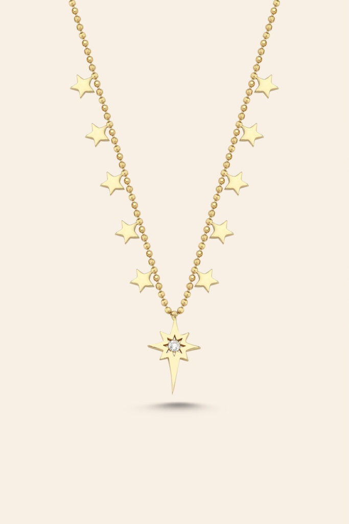 14 Ayar Sarı Altın Kuzey Yıldızı Kolye