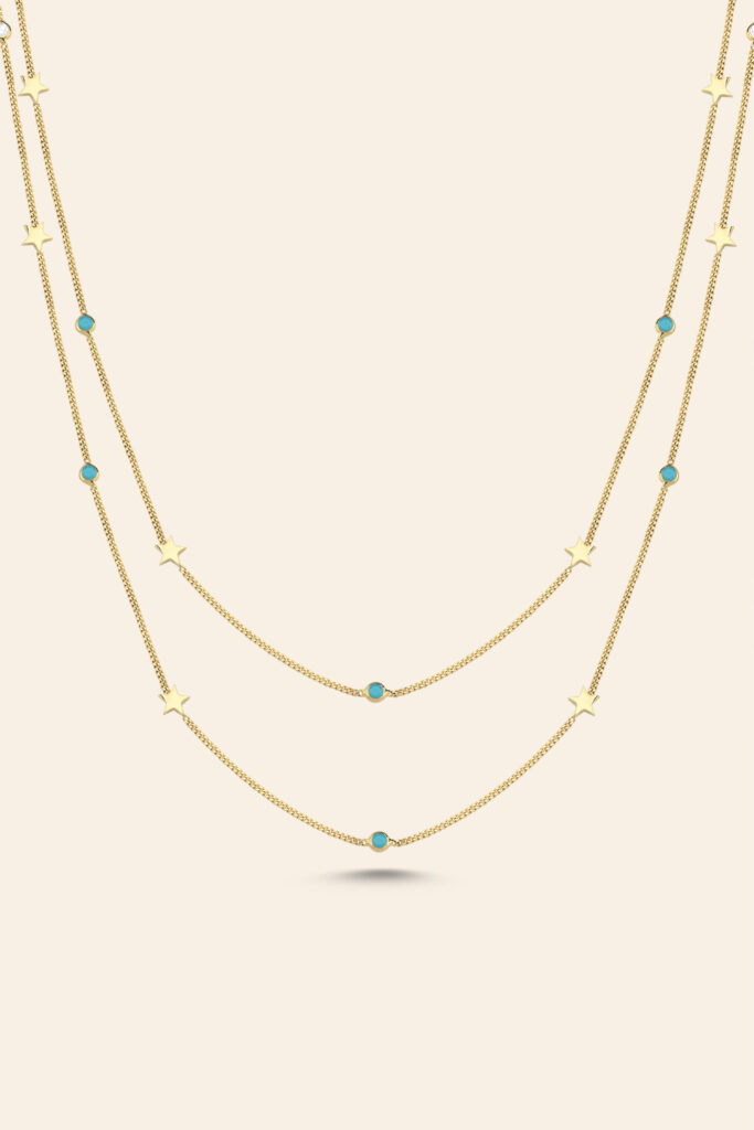 14 Ayar Sarı Altın Firuze Taşlı Yıldız Figürlü Kolye