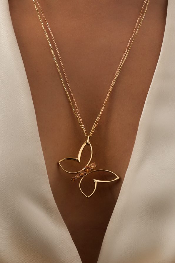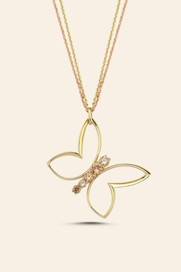 14 Ayar Sarı Altın Taşlı Kelebek Kolye