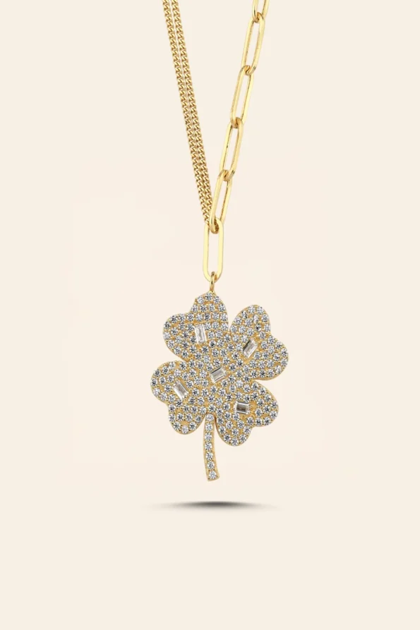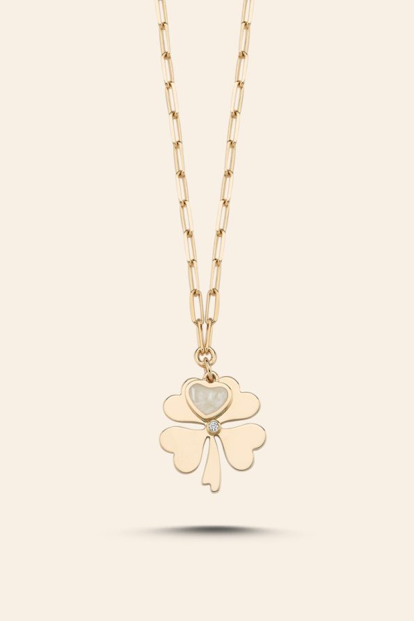 14 Ayar Sarı Altın Kalpli Yonca Kolye