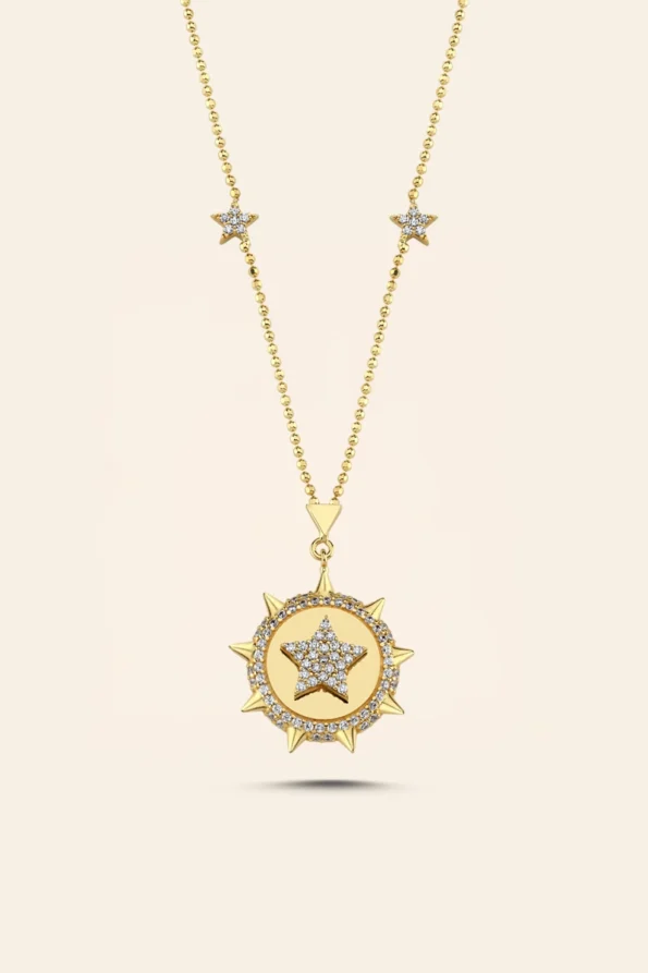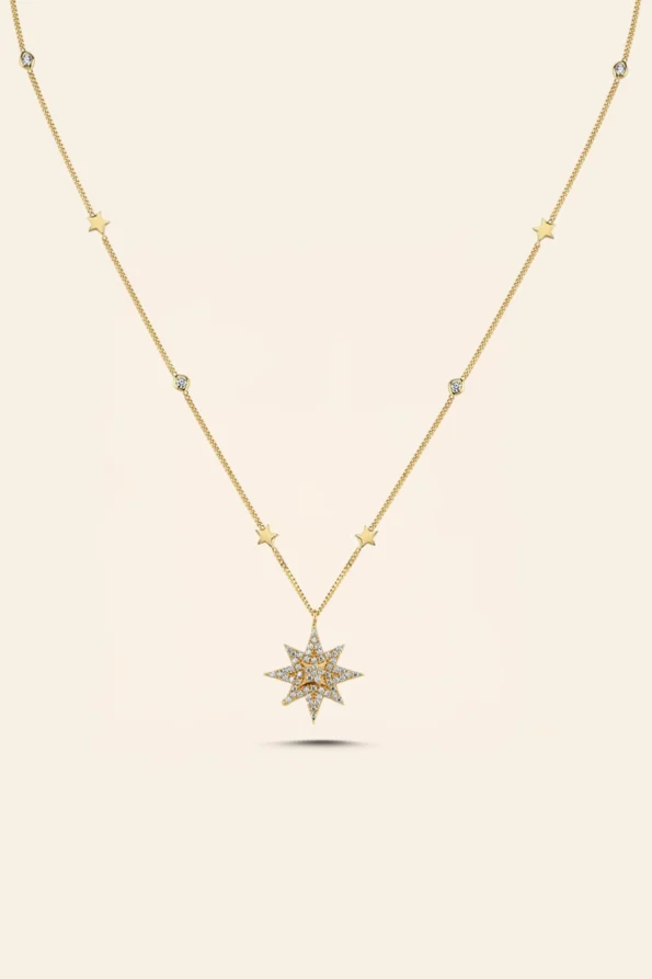 14 Ayar Sarı Altın Taşlı Kutup Yıldızı Figürlü Kolye