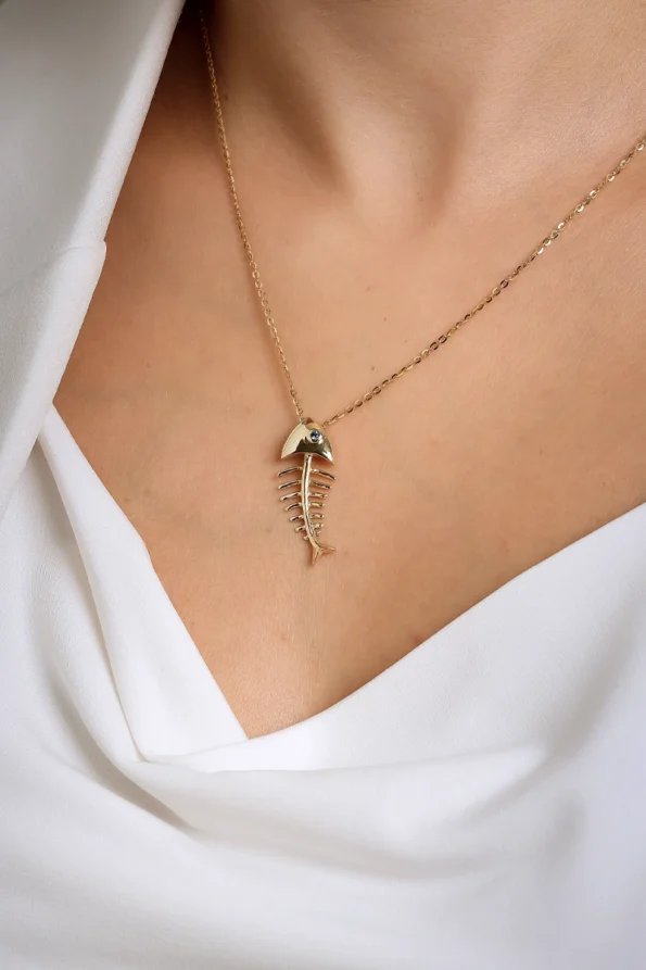 14 Ayar Sarı Altın Balık Formlu Kolye