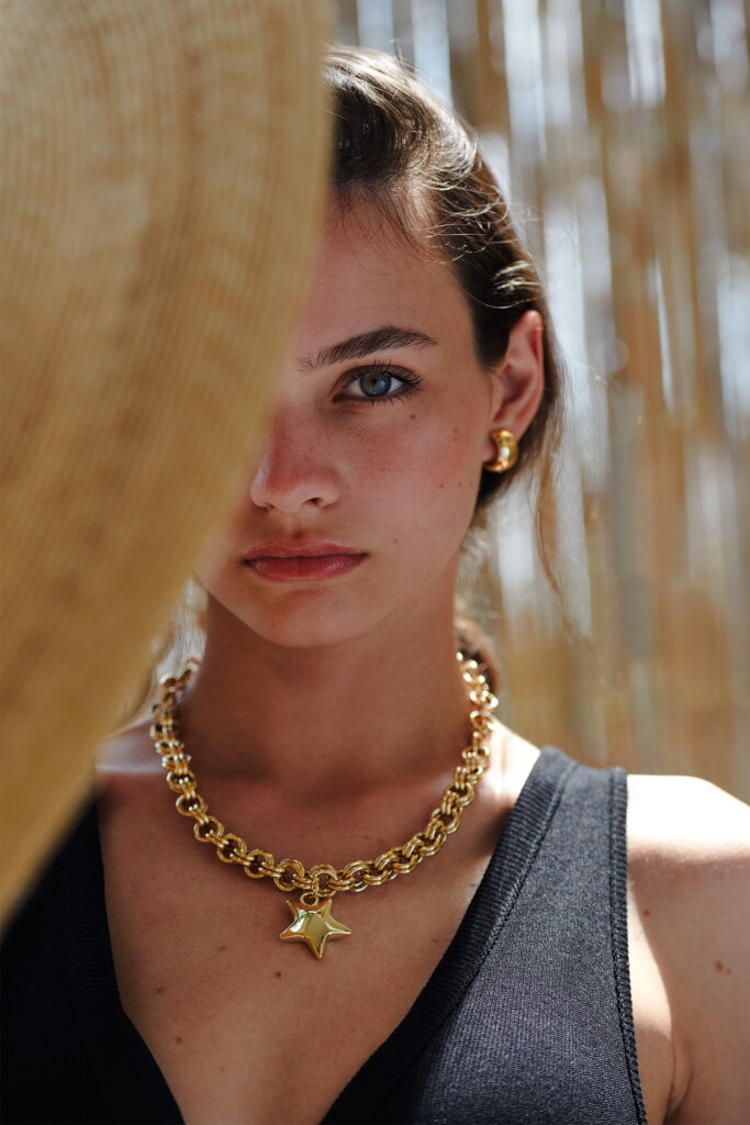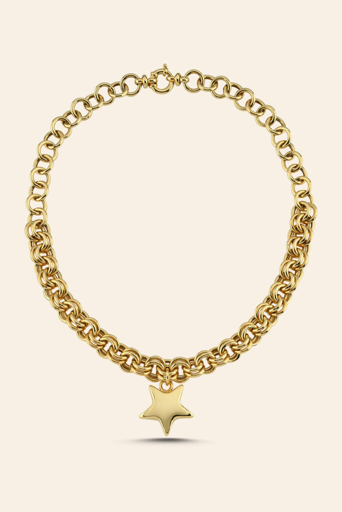 14 Ayar Sarı Altın Yıldız Figürlü Özel Zincir Tasarım Kolye