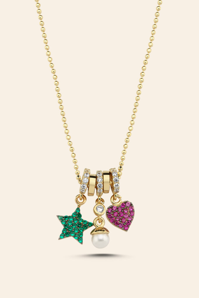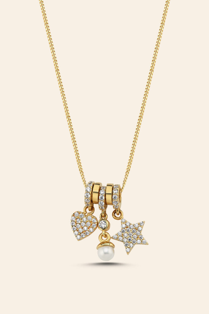 14 Ayar Sarı Altın Taş Detaylı Charm Kolye
