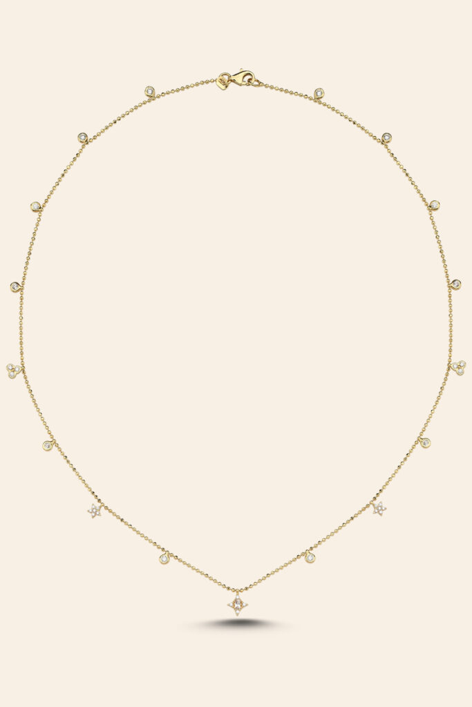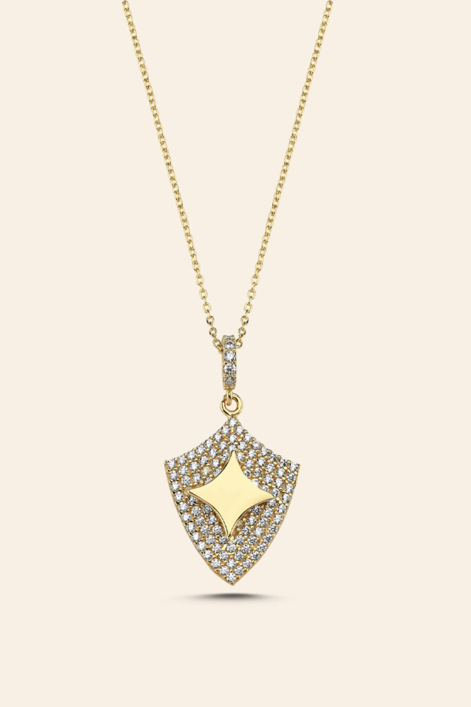 14 Ayar Sarı Altın Taşlı Yıldız Detaylı Tasarım Kolye