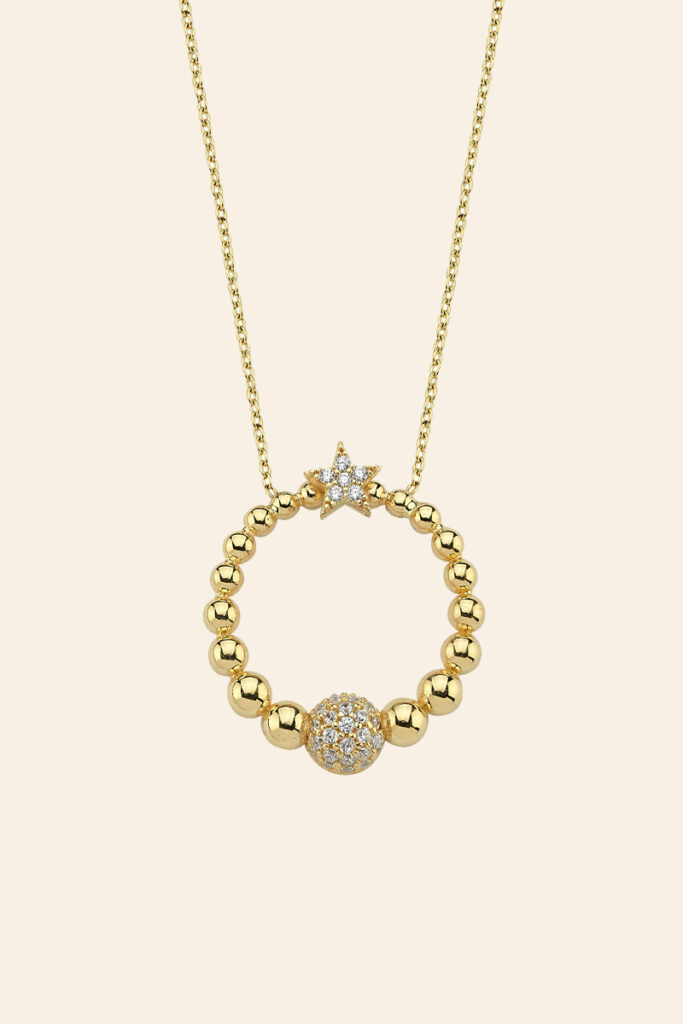 14 Ayar Sarı Altın Taşlı Yıldız Figürlü Modern Kolye