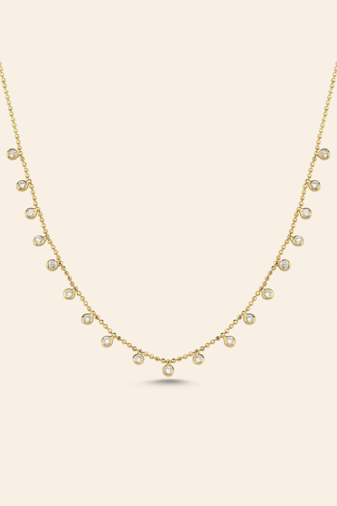 14 Ayar Sarı Altın Taş Detaylı Zarif Kolye
