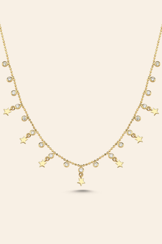 14 Ayar Sarı Altın Sallantılı Taşlı Yıldız Kolye