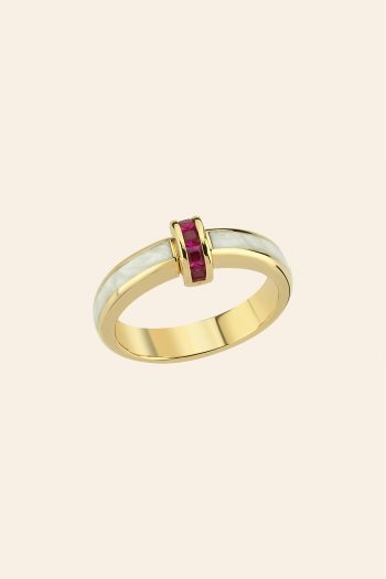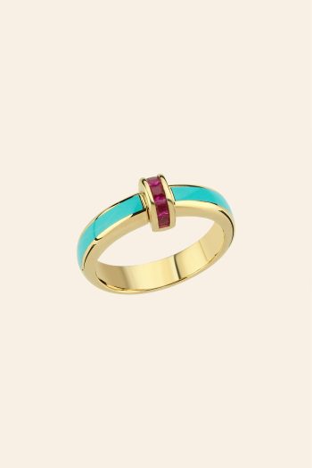 14 Ayar Sarı Altın Pastel Renk Mineli Koleksiyon Yüzük