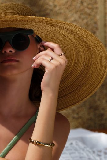 14 Ayar Sarı Altın Renkli Mineli Ekinoks Koleksiyon Yüzük