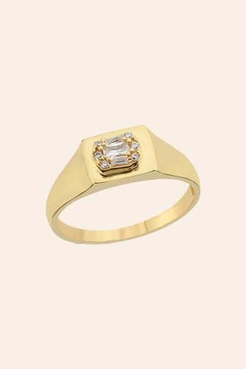 14 Ayar Sarı Altın Baget Taşlı Modern Tasarım Yüzük