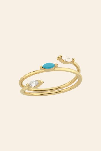 14 Ayar Sarı Altın Turkuvaz Mineli Koleksiyon Yüzük
