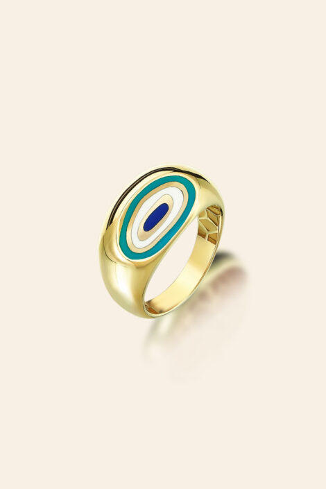 14 Ayar Sarı Altın Mineli Nazar Boncuğu İşlemeli Koleksiyon Yüzük