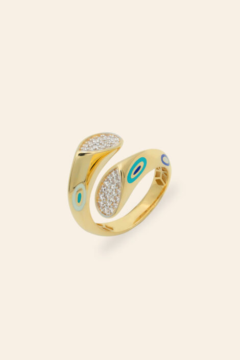 14 Ayar Sarı Altın Mineli Taşlı Nazar Figürlü Yüzük