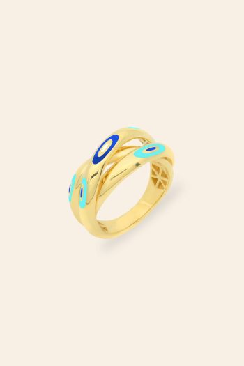 14 Ayar Sarı Altın Mineli Nazar Boncuğu Figürlü Koleksiyon Yüzük