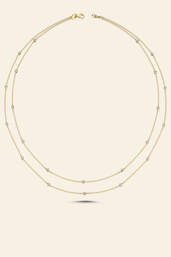 14 Ayar Sarı Altın İkili Taşlı Zincir Kolye