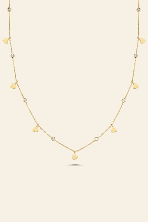 14 Ayar Sarı Altın Kalp ve Taş Detaylı Kolye