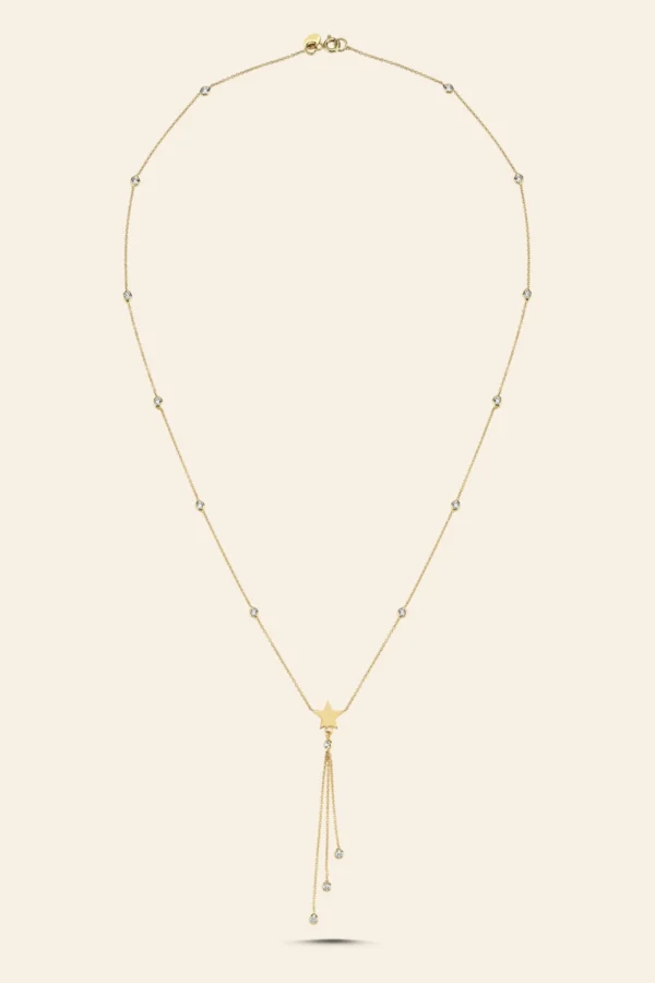 14 Ayar Sarı Altın Taşlı Yıldız Kolye